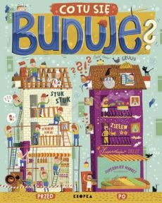 Na placu budowy jest wiele do odkrycia - są koparki i buldożery, można wiercić, kuć, murować, malować i kopać. W tej zabawnej książeczce dzieci mogą odkrywać tajniki różne place budowy - w mieście i na wsi, budowę ogromnego budynku mieszkalno-usługowego i budowę autostrady. Place budowy w porcie i na lotnisku. A gdy bóbr buduje dom... to też jest przecież budowa! A kiedy wszystko jest już gotowe? Wtedy można się tam wprowadzić, mieszkać, bawić się, i pracować! Pełna wyrazów dźwiękonaśladowczych książeczka uczy i bawi! Spróbujcie się nie śmiać, naśladując rozmaite odgłosy podczas czytania! [Platon].